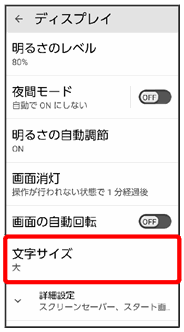 | 文字サイズ | 画面に表示される文字の大きさを設定します。 | |