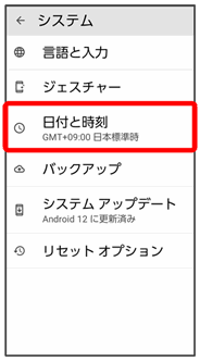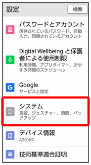 言語と入力や日付と時刻、バックアップ、リセットなどシステムに関しての確認や設定ができます。