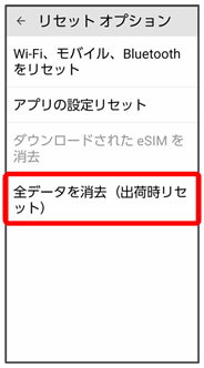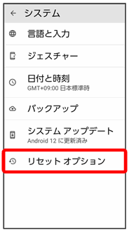 | リセット オプション | ネットワーク設定のリセットやアプリの設定のリセット、初期状態にリセットができます。 |