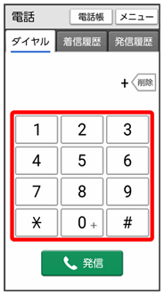 • ↓ダイヤルキーをタップして相手の電話番号を入力