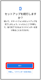 初期設定の手順は本機にSIMカードが取り付けられている場合の手順となります。eSIMを利用する場合は初期設定でWi-Fiを設定し、初期設定の完了後にeSIMの設定を行ってください。詳しくは「eSIMについて」を参照してください。