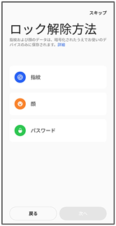 - ロック解除方法を設定しないときは、スキップをタップします。
