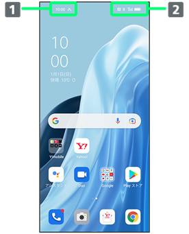 ステータスバーは、本機の画面上部にあります。新着メールなどの通知アイコンや、本機の状態をお知らせするステータスアイコンが表示されます。