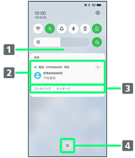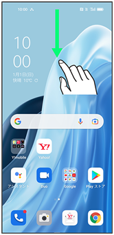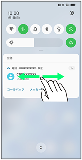 ステータスバーを下にフリック/スワイプすると、通知バーを開くことができます。通知バーでは、通知アイコンとその内容を確認できます。