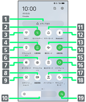 通知バーを下にフリック/スワイプすると、コントロールセンターを開くことができます。コントロールセンターでは、アイコンをタップして機能のON/OFFなどを設定できます。