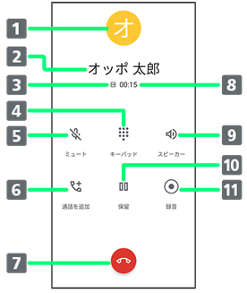 通話中は、アイコンをタップすることにより、次の機能が利用できます。