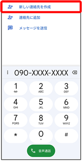 - ダイヤルパッドをタップして登録する電話番号を入力