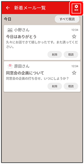 - 新着メール一覧画面で、削除する新着メールの削除