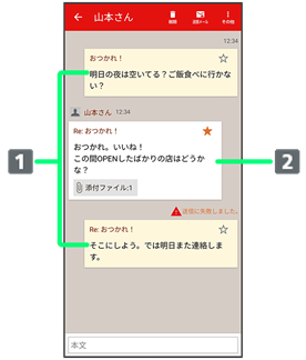 - メール送受信画面で、宛先グループ(相手)名をタップ