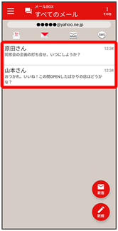 - 相手を限定せずに、迷惑メール以外の受信したすべてのメールを確認するときは、すべてのメールをタップします。