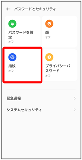 - 指紋センサーに指を触れたまま指紋の登録や認証を開始すると、起動できない場合があります。指を離し、再度操作してください。