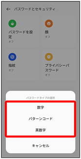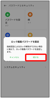 - ロック画面パスワードの設定について詳しくは、「パスワードで画面ロックを解除するように設定する」を参照してください。