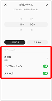 - スヌーズをタップするとスヌーズが設定されます。