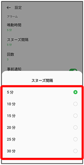 - スヌーズ間隔