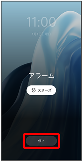 - 画面ロックを解除しているときは、アラーム通知のスヌーズ/停止をタップします。