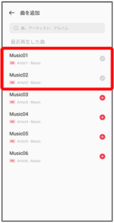 - プレイリストに追加する曲をタップ(