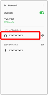 - 「ペアリング済みデバイス」欄に、ペア設定済みのBluetooth®機器が表示されます。