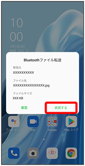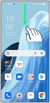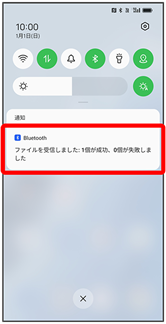 - 受信完了後、ステータスバーを下にフリック/スワイプ