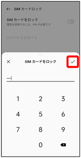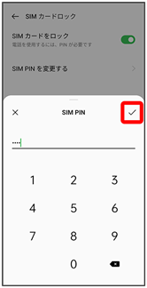 PINコードを有効にすることで、SIMカードを本機に取り付けた状態/eSIMが有効な状態で電源を入れたとき、PINコードを入力する画面を表示するように設定できます。