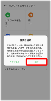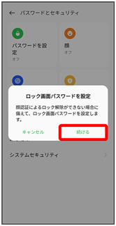 - ロック画面パスワードをすでに設定しているときは、ロックを解除する操作を行います。