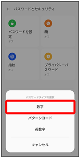 - ロック画面パスワードの入力画面でその他の暗号化方法