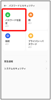 | ロック画面パスワード | 画面ロックを解除するための暗証番号です。 詳しくは、「パスワードで画面ロックを解除するように設定する」を参照してください。 |