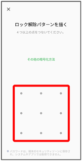 - パターンを指でなぞって画面ロックを解除するように設定する