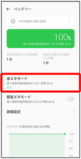 バッテリーの使用状況を確認したり、バッテリーの消費を軽減する設定ができます。
