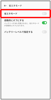 - 省エネモード設定画面でバッテリーレベルで指定する(