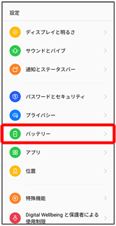 | バッテリー使用量 | バッテリー使用量をアプリごとに確認できます。 |