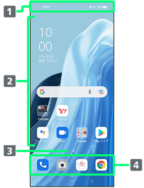 | アプリのショートカットやフォルダ、ウィジェットを自由に配置できます。 | ||