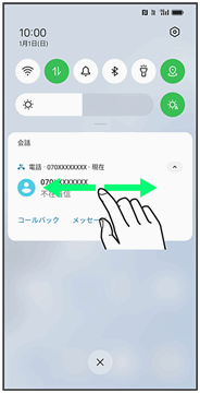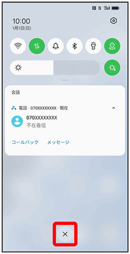 ステータスバーを下にフリック/スワイプすると、通知バーを開くことができます。通知バーでは、通知アイコンとその内容を確認できます。