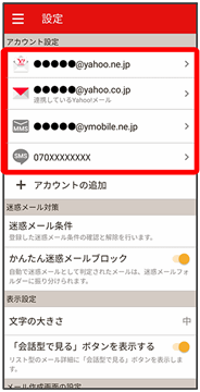 • ↓設定したいメールアカウントをタップ