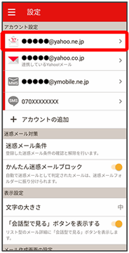 • ↓Y!mobile メール設定画面で、Y!mobile メールのアカウントをタップ