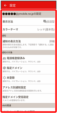 指定ドメイン 指定ドメインに登録した相手からメールを受信したときの通知方法を設定します。