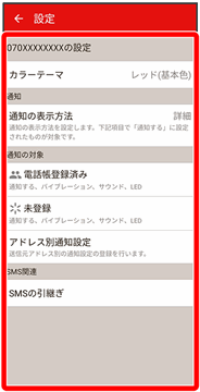 アカウント設定 メールアカウントの設定ができます。詳しくは、「Y!mobile メールの設定」「MMSの設定」「SMSの設定」を参照してください。