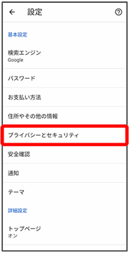 • ↓プライバシーとセキュリティ