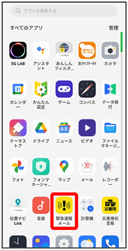 緊急速報メール受信メッセージ一覧画面が表示されます。