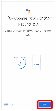 • ↓「OK Google」と3回話しかける(初回設定時のみ)