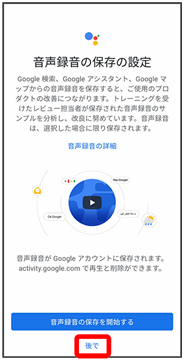 • 音声録音をGoogle アカウントに保存するときは、音声録音の保存を開始するをタップします。
