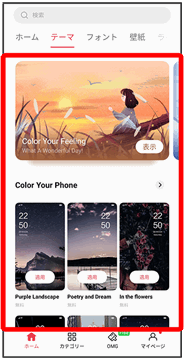 テーマストアでは、テーマやフォント、壁紙をダウンロードして設定することができます。ご利用にはHeyTap アカウントへのサインインが必要です。