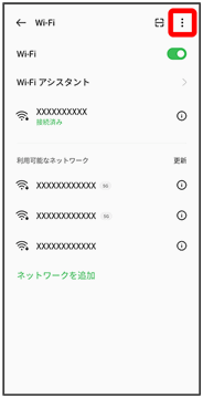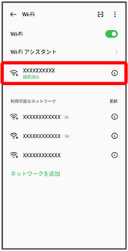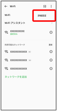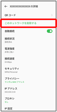 接続状況、電波強度、接続速度、セキュリティ、プライバシー、IPアドレス、プロキシ、IP設定などが表示されます。