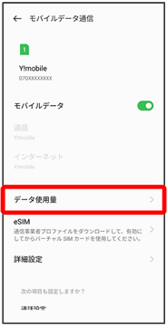 データ使用量画面が表示されます。