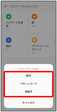 | ロック画面パスワード | 画面ロックを解除するための暗証番号です。 詳しくは、「パスワードで画面ロックを解除するように設定する」を参照してください。 |