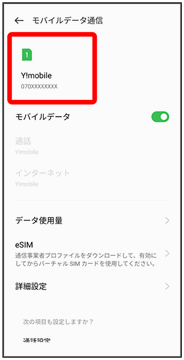 その他、必要に応じて通信方式、データローミングの設定を変更してください。