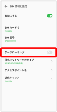 • データローミングをタップするたびに、有効(oppo-reno7-a_icon_010)/無効(oppo-reno7-a_icon_083)が切り替わります。