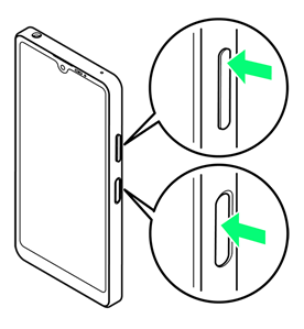 - 電源キーと音量キーの上を同時に、本機が振動するまで長押し