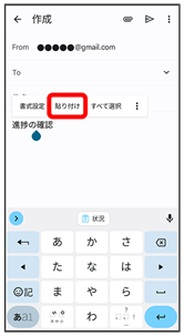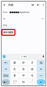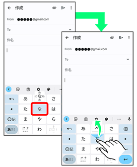 が表示され、キーボードを切り替えることができます。 - スペースを入力します。かな入力中は、候補リスト内の文字を順に表示します。キーボードを複数設定している場合は、ロングタッチしてキーボードを切り替えることができます。
