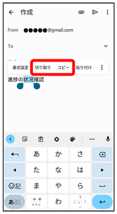 文字入力画面やウェブサイトなどで、入力済みの文字やコピーしたいテキストをダブルタップ/ロングタッチすると、選択した文字列の周辺に編集メニューが表示されます。表示されるメニュー項目は、アプリによって異なります。