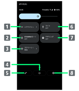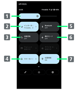 クイック設定パネルでは、アイコンをタップして機能のON/OFFなどを設定できます。